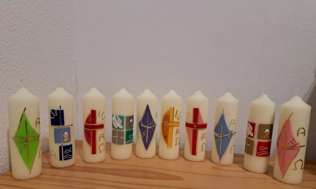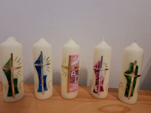 Auch in diesem Jahr haben unsere KDFB-Frauen wieder Kerzen mit österlichen Motiven verziert. Die inzwischen gesegneten Kerzen stehen ab Sonntag, den 15.03.2026 in der Pfarrkirche St. Peter und Paul zum Mitnehmen bereit. Wir erbitten pro Kerze um eine Spende von 6 €. Der Erlös aus dem Kerzenverkauf kommt wie immer einem unserer caritativen Projekte zugute. Ende des Jahres werden wir eine genaue Auflistung unserer Spenden veröffentlichen. Ein herzliches Dankeschön an unsere fleißigen Kerzenbastlerinnen und auch an alle, die uns bei unseren Spendenprojekten unterstützen.