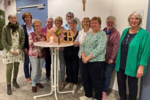 - Unsere geistliche Beirätin Karin Schmitt gedachte in ihrem Gebet nicht nur unserem Mitglieder Roswitha Hofmann, die nach der Jahreshauptversammlung 2024 verstarb, sondern auch an das Leid der vielen zivilen Personen in den Kriegsgebieten, die entweder gestorben oder vermehrt Lebenseinschränkungen und Hunger erleiden müssen. Für Roswitha und alle Kriegsgeschädigten wurde eine Kerze angezündet.