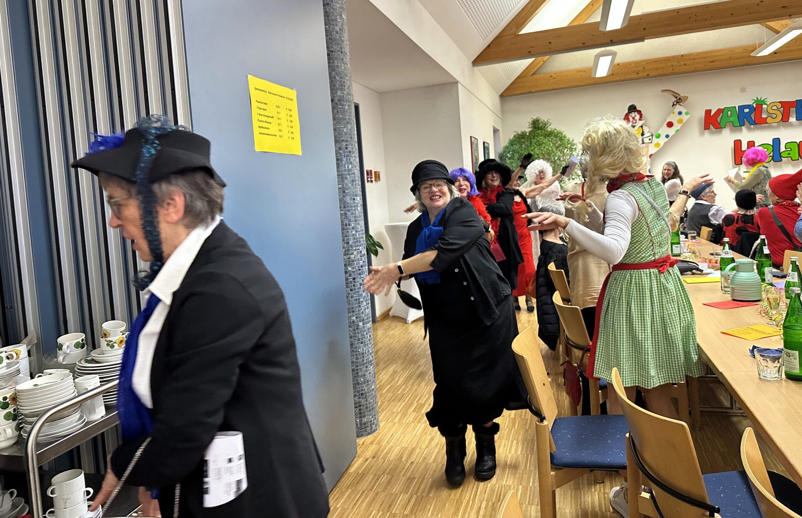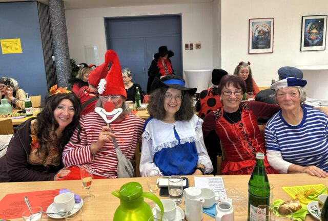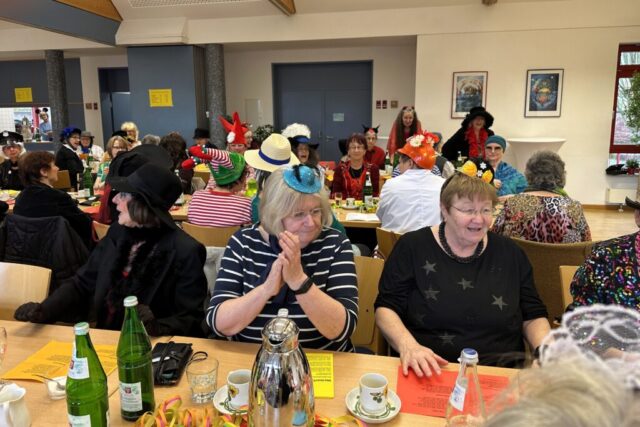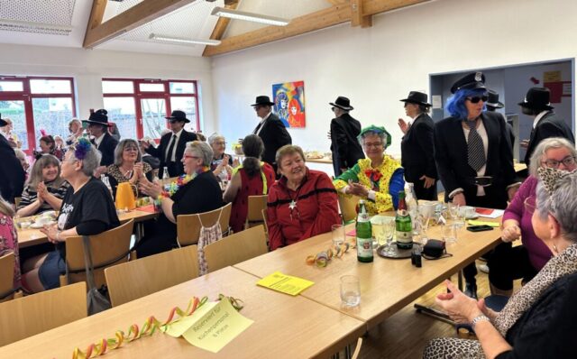 Der Frauenbund Dettingen (KDFB) hatte an Weiberfasching wieder zu seinem „Närrischen Frühstück“ eingeladen und schnell war die Veranstaltung ausgebucht. Farbenfroh kostümierte Närrinnen konnten ab 8.30 Uhr an langen Tafeln Platz nehmen und freuten sich auf unbeschwerte Stunden im schön geschmückten Pfarrsaal.