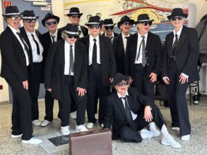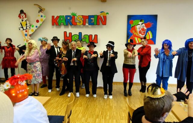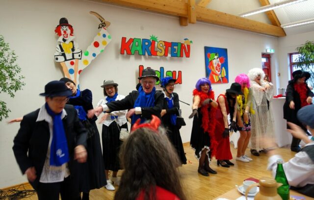Uschi Stenger beschäftigte das Publikum dann mit einer Mitmach-Geschichte, die zum Aufstehen und Setzen aufforderte und alle in Bewegung brachte. Danach konnten die Anwesenden sich an den Powerfrauen erfreuen. 12 Frauen der Truppe marschierten zu Musik der Blues Brothers in den Pfarrsaal und begeisterten die Anwesenden mit ihrem einstudierten Tanz. Die Zugabe der Tanztruppe wurde von lautem Mitklatschen begleitet.